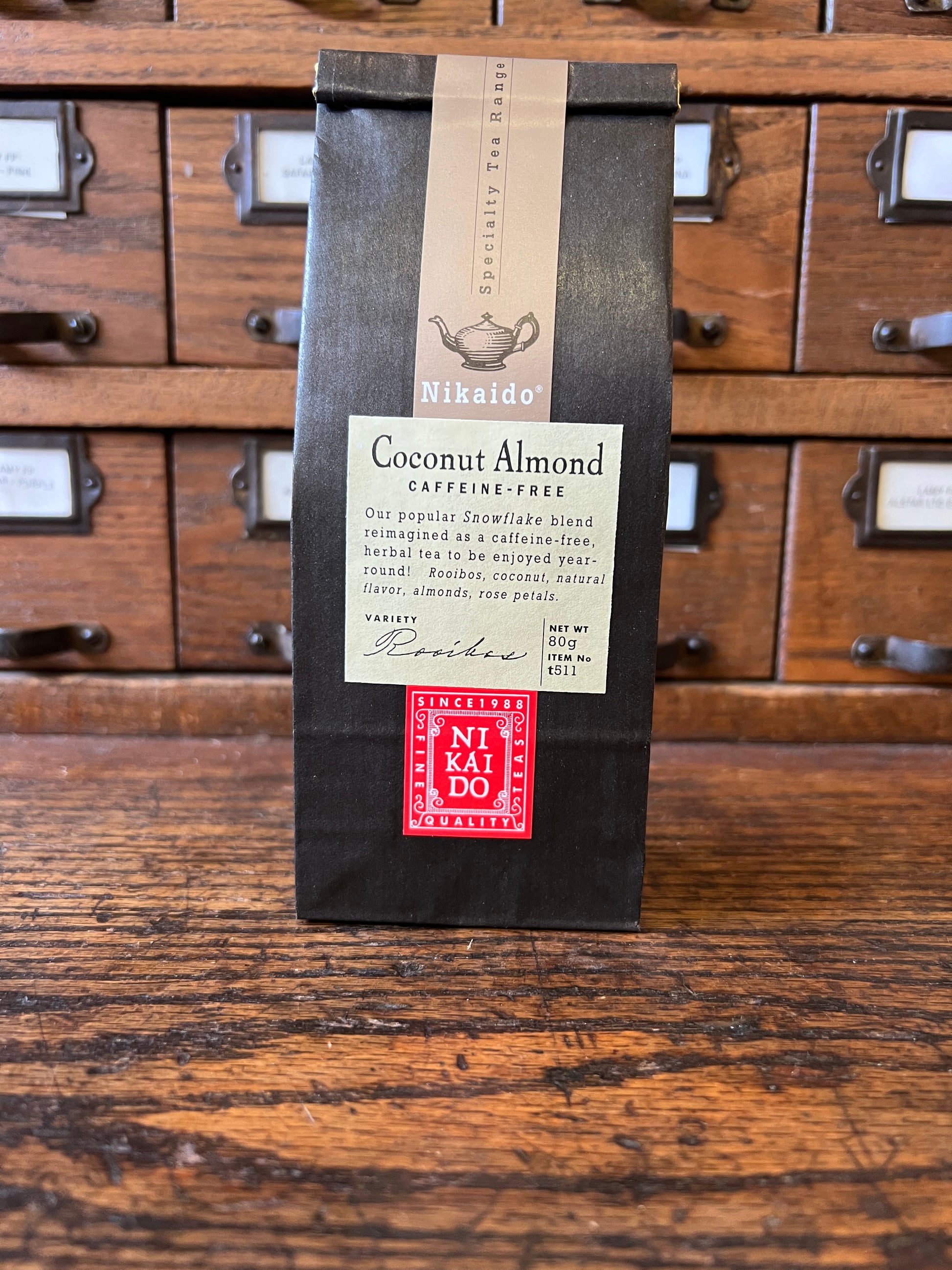 Ingredients: Rooibos, coconut, natural flavor, almonds, rose petals.
